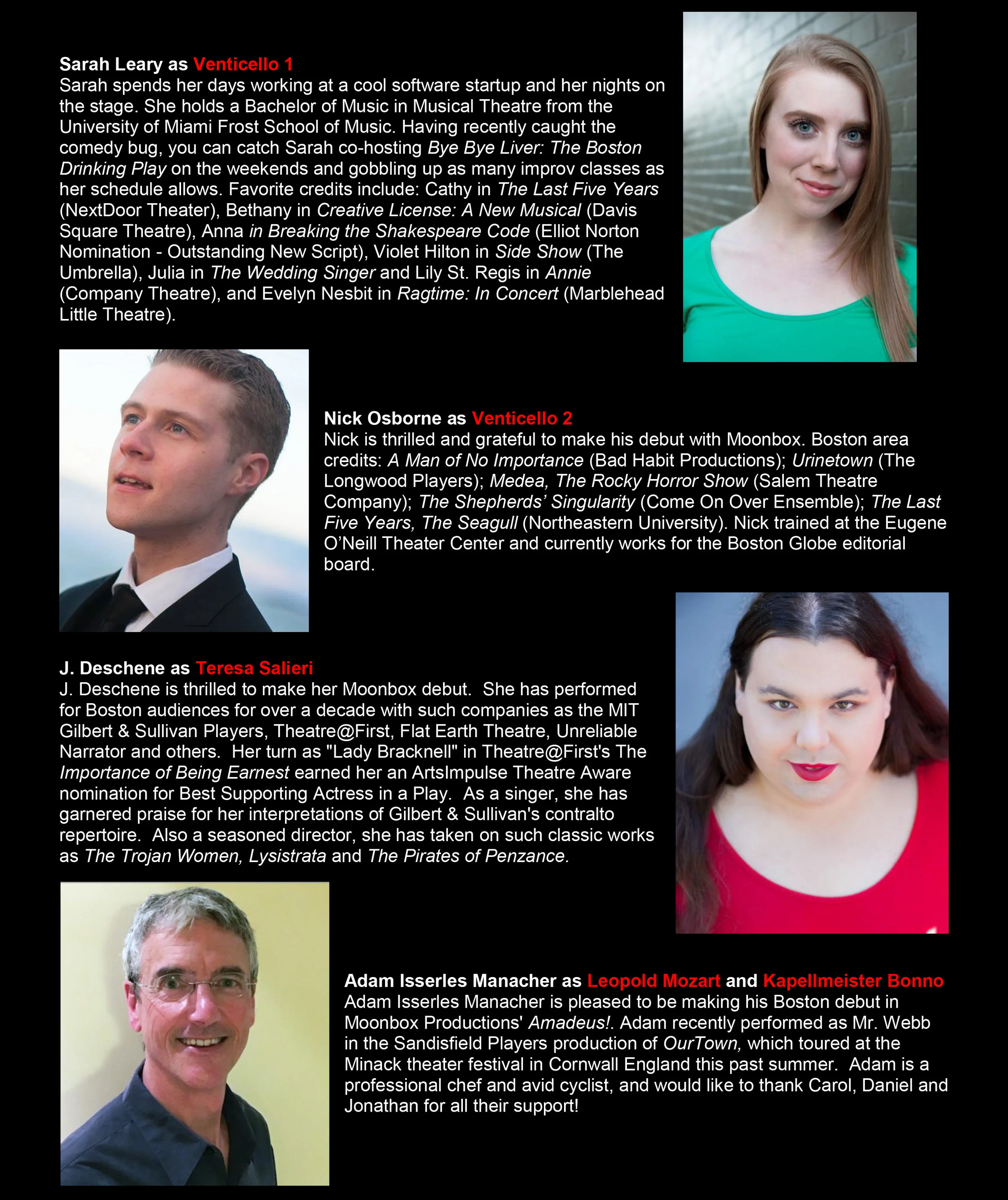 "Breathe in the extraordinary artistry of Matthew Zahnzinger in the pivotal role of Antonio Salieri, rival and bête noire to Wolfgang Amadeus Mozart."