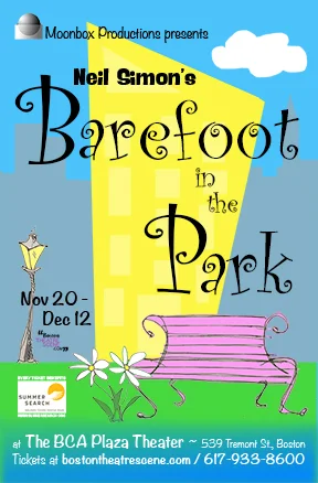 "Moonbox Productions has nailed the spry wit of Neil Simon with its presentation of "Barefoot in the Park," playing through Dec. 12 at the Boston Center for the Arts." -Kilian Melloy